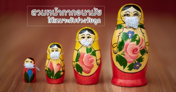 การเลือกสวมหน้ากากอนามัยเพื่อจุดประสงค์ในการป้องกันโรคให้กับเด็ก ควรคำนึงถึงความเหมาะสมตามช่วงอายุของลูกเป็นหลัก โดยเฉพาะเมื่อมีความจำเป็นต้องเดินทางออกจากบ้าน ยิ่งโดยเฉพาะในเด็กเล็กนั้นยิ่งควรต้องระมัดระวังเป็นพิเศษ เพราะหากคุณพ่อคุณแม่เลือกสวมหน้ากากให้ลูกโดยทิ้งระยะเวลานานเกินไป จากการป้องกันโรค อาจกลายเป็นอันตรายแก่ลูกแทนได้ ดังนั้น ก่อนที่คุณพ่อคุณแม่จะสวมหน้ากากให้ลูกควรปฎิบัติให้ถูกต้องตามคำแนะนำของแพทย์ เพื่อป้องกันอันตรายที่อาจเกิดขึ้นได้ค่ะ