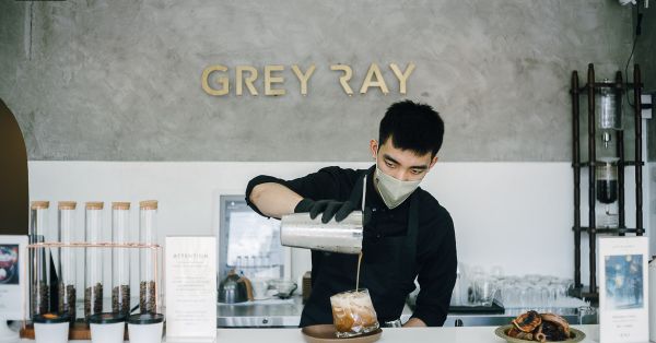 คาเฟ่ดีไซน์สวยจาก GREY RAY แบรนด์ Stationary ของไทยแบรนด์เครื่องเขียนคุณภาพโดยดีไซเนอร์ไทยที่ออกแบบคอนเซ็ปต์มาจากฟังก์ชันการใช้งานและแนวคิดที่เป็นมิตรต่อโลก GREY RAY Café & More ที่สะท้อนความเป็นตัวเองออกมาผ่านการตกแต่งสไตล์ Mid-Century Modern ผสมผสานสไตล์ Loft กับการตกแต่งร้านด้วยสีเอิร์ธโทนที่มีรูปทรงเรขาคณิตเป็นส่วนประกอบในทุกมุม ตั้งแต่เคาน์เตอร์ Slow Bar ปูนสี่เหลี่ยมที่เพิ่มดีเทลความเป็นลอนคลื่น มีฝ้าเพดานสูงสำหรับใช้ห้อยโมบายดีไซน์แปลกตาที่มาช่วยเพิ่มลูกเล่นให้กับบรรยากาศภายในร้าน โดยพื้นที่ทั้งหมดถูกจัดวางด้วยเฟอร์นิเจอร์ โต๊ะและอาร์มแชร์ฟอร์มสวย พรีเซนต์ความเป็น GREY RAY ได้เป็นอย่างดี นอกจากจะเปิดให้เข้ามาลิ้มลองเครื่องดื่มซิกเนเจอร์ของทางแบรนด์แล้ว ที่นี่ยังเปิดให้บริการสำหรับใครที่กำลังมองหาพื้นที่นั่งสบาย ๆ รายล้อมด้วยบรรยากาศที่เหมาะแก่การนั่งทำงานแบบชิลล์ ๆ อีกด้วย